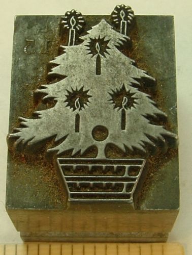 VINTAGE LETTERPRESS ALL-METAL: CHRISTMAS ORNAMENT: CANDLE, CONES, AND BOUGHS