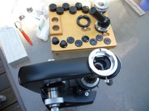 “Vintage Meopta microscope outfit. Condition: excellent optic appear clean and clear. Weight with case: 33.6 lbs. Please view photos for contents.” |