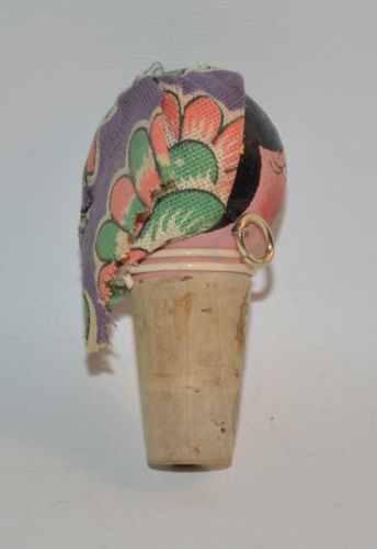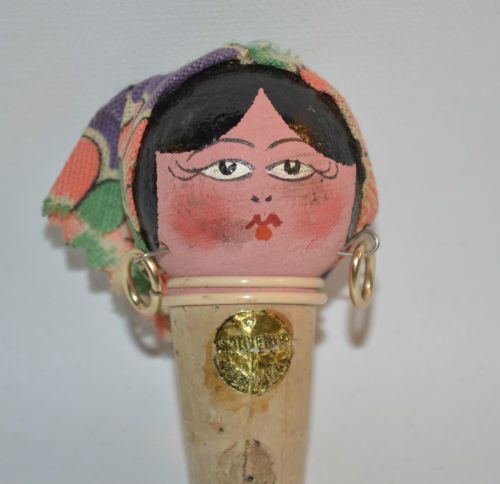 Vintage Mexican Doll Head Wine Bottle Cork Stopper Hand painted Folk Art