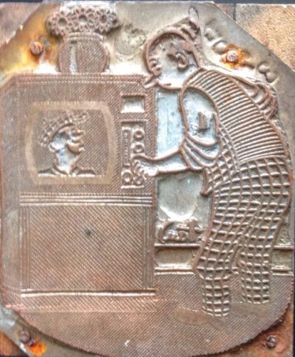 ANTIQUE COPPER AND WOOD PRINTING BLOCK VICTORIAN LIVING ROOM