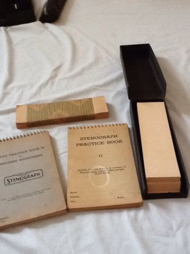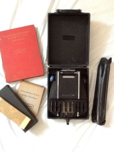 | “Stenographe machine is in very good condition. Book by B.H. Horne is in very good condition. Case, tripod and paper are all in good condition. Paper has yellowed with age, but is usable.” |