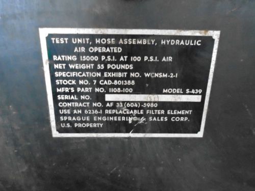 ASHCROFT HYDRAULIC PRESSURE TESTER GAGE 10000 PSI PORTABLE 1327 BG-101A USED