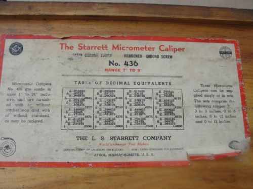Starrett Outside Micrometer Number 224 Set G