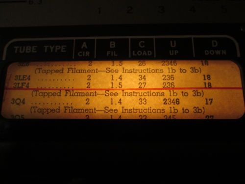EICO ROLL CHART FOR MODEL 625 TUBE TESTER FREE SHIPPING!!