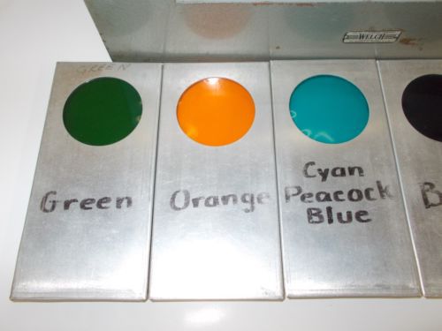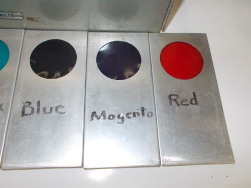| Seller Notes | “Original, vintage condition. Shows some oxidation/wear on the metal but overall in good physical condition. The power cord is brittle due to age and will need to be replaced, the on/off switch does not turn off. Includes six color filters. Tested and working.” |