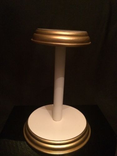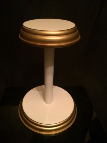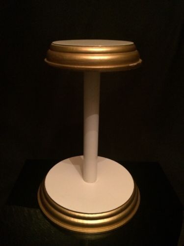 Vintage White with Gold Trim Wooden Hat Store Display Stand # 3