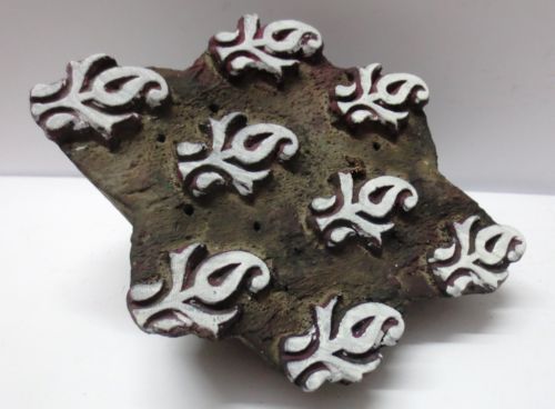 VINTAGE WOOD CARVED TEXTILE PRINTING FABRIC BLOCK STAMP UNIQUE PATTERN DESIGN