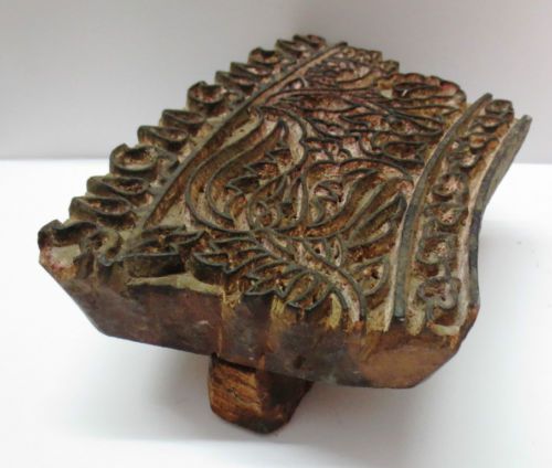 INDIAN WOODEN HAND CARVED TEXTILE PRINTING FABRIC BLOCK / STAMP PRINT
