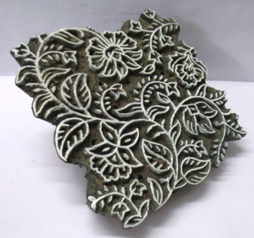 VINTAGE WOODEN HAND CARVED TEXTILE PRINTING ON FABRIC BLOCK STAMP DESIGN HOT 300