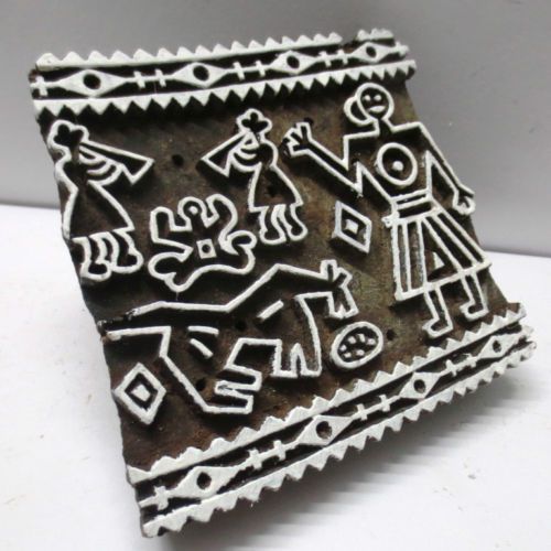 VINTAGE WOODEN HAND CARVED TEXTILE PRINTING FABRIC BLOCK STAMP UNIQUE DESIGN 11