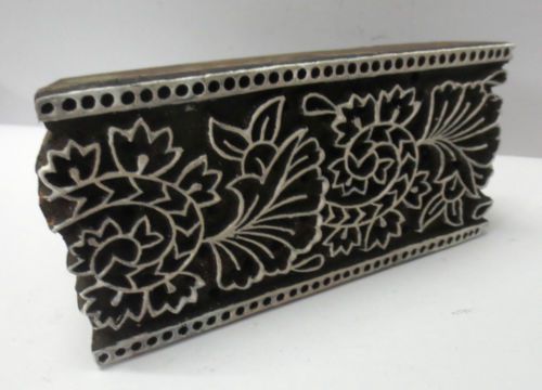 VINTAGE WOODEN HAND CARVED TEXTILE PRINTING ON FABRIC BLOCK STAMP DESIGN HOT 245