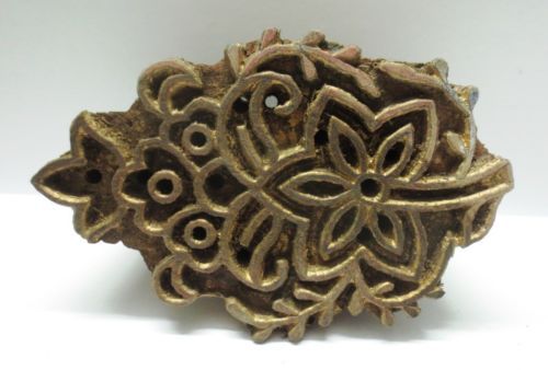VINTAGE WOODEN HAND CARVED TEXTILE PRINTING FABRIC BLOCK STAMP FINE FLORAL PRINT