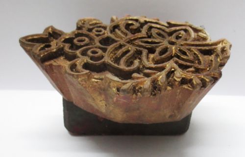 VINTAGE WOODEN HAND CARVED TEXTILE PRINTING FABRIC BLOCK STAMP FINE UNIQUE