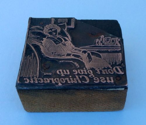 Vtg ANTIQUE Letterpress Printing Block SPINE Advertisement CHRIROPRACTIC Medical