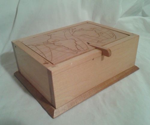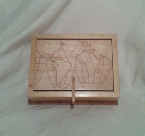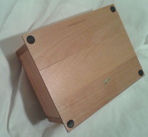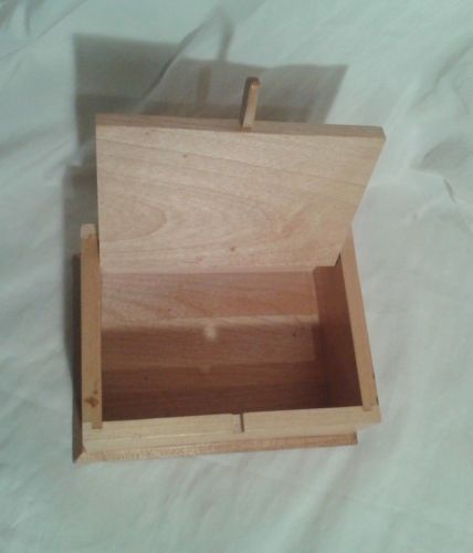 | “Very good clean condition. One very small chip in the front lip and on teh bottom thereis a very small crack along the bottom and one of the nails s protruding from the side. Measures 6 3/4" x 5" x 3". Natural cherry or solid bamboo.” |