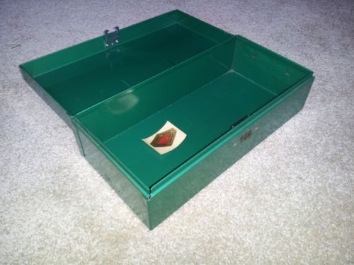 Vintage Merriam No. 3 Bondsman Metal Lock Box, Military Army Green, File, Handle
