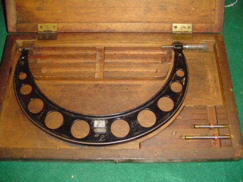 VINTAGE STARRETT NO. 436 10"-11" MICROMETER CALIPER .001 GRADS IN WOOD BOX