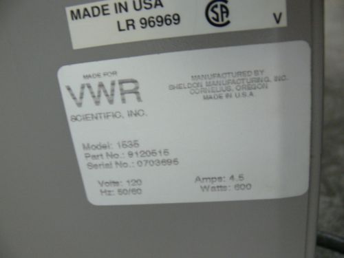 VWR / Sheldon 1535 General Purpose Laboratory Incubator w Outlet, 115V, 6.7cuft