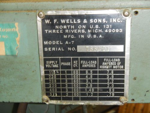 Doall 20" Model 2012 1AC vertical bandsaw band saw HVAC sheet metal machine