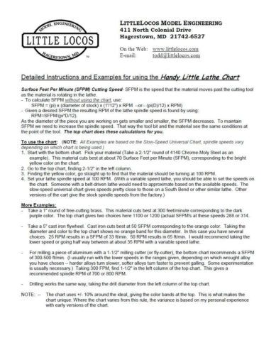 WALL CHART for METAL LATHE for the CLAUSING 10-in Lathe