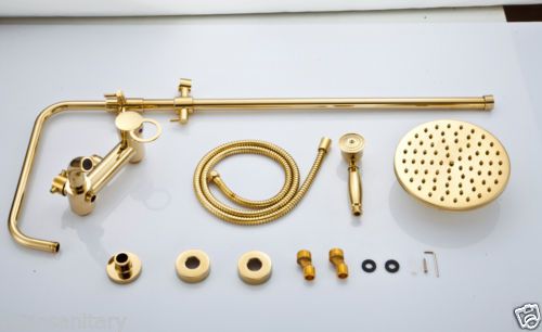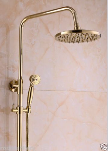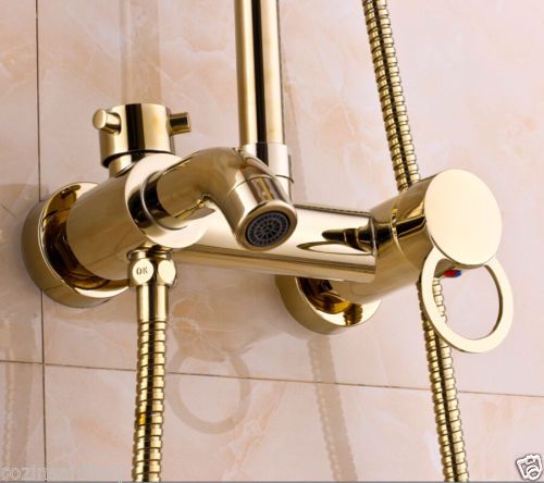 Modern Golden Solid Brass 8" Rain Overhead Shower Bath Set Mixer Water Faucets