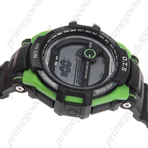 Waterproof Electronic Quartz Free Shipping Light Stopwatch Wristwatch Green
