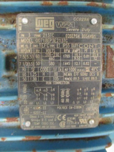 BALDOR INDUSTRIAL MOTOR CAT#CM3616T,7 1/2HP, 3450RPM,208-230/460V,FR:184TC
