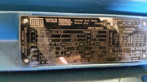 WEG 40 HP AC Motor, new, 1775 RPM, 3 Ph
