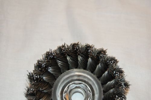 WEILER 4" BEVEL KNOT BRUSH 13405 .014WIRE 1/2" ARBOR HOLE