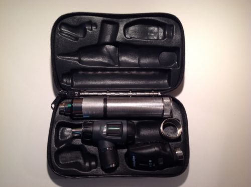 “Set is in excellent used condition and fully functional in every aspect. It was used very little, maximum 3 times. It comes in their original box with their operating instructions and a guide to the use of ophthalmoscopes in eye examination.” |