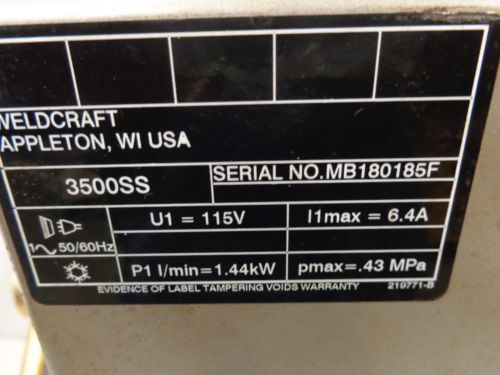 WELD CRAFT TIG WELDER WATER COOLER #3500SS STK 1372