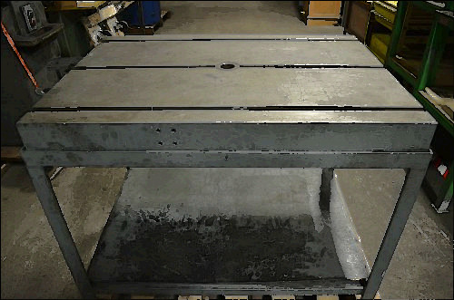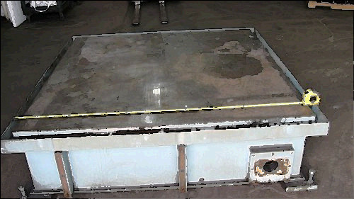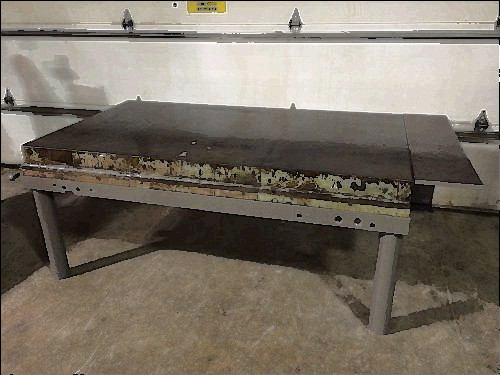 WELDING TABLE, BIG 102in x 43in x 30in high, 1.0 IN THICK AL TOP, HVY ST FRAME. This is a used machine base, The machine was never placed in service and was scrapped. This table is very heavy duty.