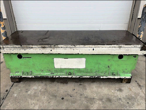 WELDING TABLE, LONG 91in x 36in x 30in high, 1.0 IN THICK AL TOP, STEEL LEGS. This is a used machine base, The machine was never placed in service and was scrapped. Will make a great welding table or setup table.