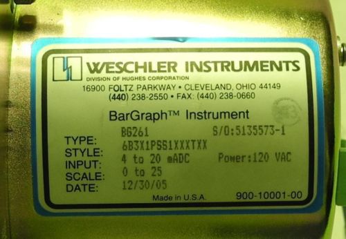 Weschler BarGraph Megawatts Meter BG261 Part #5135573-1