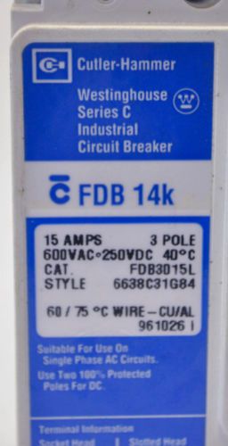 Westinghouse EB3015 Circuit Breaker 15A 240V 3 Pole