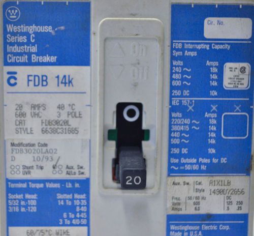 Westinghouse FDB3015L Industrial Circuit Breaker 15A 600VAC 3 Poles Ser. C