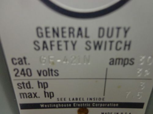 CUTLER HAMMER ON & OFF HEAVY DUTY SAFETY SWITCH