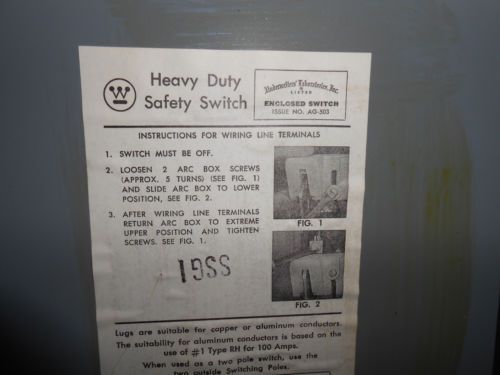 WESTINGHOUSE FAN-322 60 AMP 240 VOLT FUSIBLE SWITCH PLUG IN UNIT