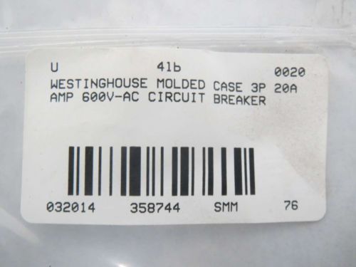 WESTINGHOUSE MOLDED CASE 3P 20A AMP 600V-AC CIRCUIT BREAKER B358756