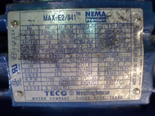 US ELECTRICAL MOTOR 20HP PH3 256T:FR 230/460V 1770RPM TYPE:CTE USED