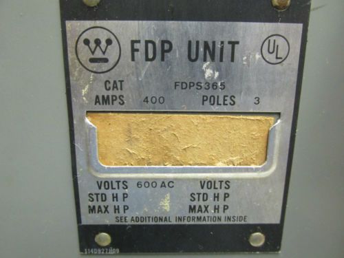 Westinghouse Safety Switch 600A, FDP Unit 600V Cat# FDP366 .. VX-301