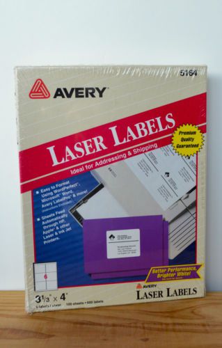 Avery 5164 White Mailing Laser Labels - 3 1/3" Width X 4", New