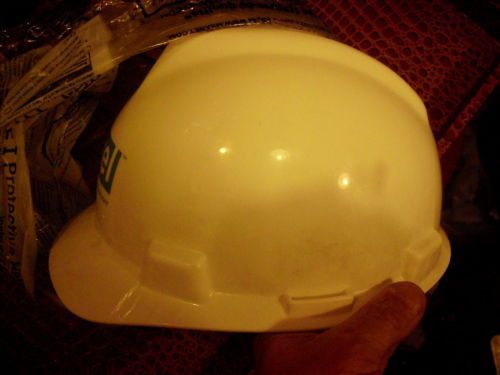 V-gard MSA White Medium protective construction safty hard hat Armstrong logo