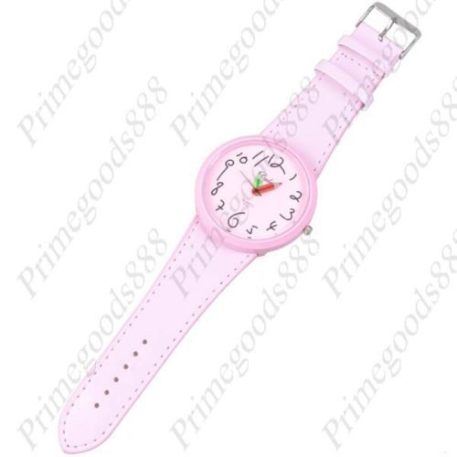 Wide Plastic Baby Cinnamon Rabbit Quartz Wristwatch Lady Ladies Women's Pink