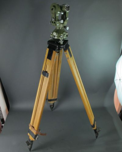 Vintage Military Transit Tripod Wood Metal Tips Leather