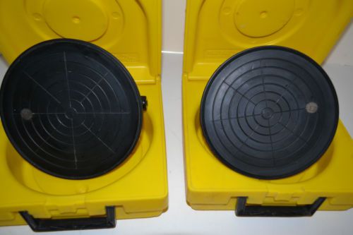 | “THE PAIR ARE USED AND IN EXCELLENT WORKING & COSMETIC CONDITION. NO DAMAGE. VERY CLEAN WITH A LITTLE YELLOW PAINT AND VERY MINOR SCRATCHES.. CASES ARE EXCELLENT. NO DAMAGE BUT HAS YELLOW PAINT ON THEM.” |
