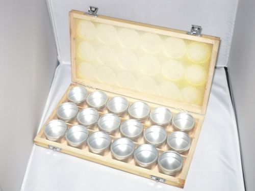 Wooden Box with 24 Aluminium Tin Watch Part Gems Storage Trays # 726
