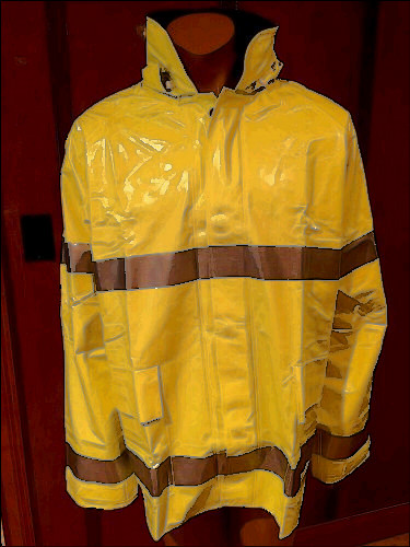 New, in very good condition Regal model A-282 rain jacket and pants combination. Rain jacket features reflective striping sown in. Great for tow truck operators, road workers, or any others who require not only protection from rain environments, but with a requirement to be seen also.