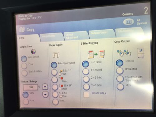Xerox Workcentre 7425 Color Copier Network Printer Scanner Fax Copy MFP 11x17 Item Description (888)987-COPY(2679) "Retail Machines at Wholesale Prices" THIS VIDEO IS OF THE ACTUAL MACHINE YOU WILL BE PURCHASING!! Get your own valid XHTML YouTube embed code All Options Below Are Included With This Machine!! Xerox WorkCentre 7425 Color Copier , Network Printer, Network Scanner, Fax **This Machine Came To Us As A Repo And Only Has 25K Color Copies / Prints and 71K B&W Copies / Prints ** This Machine Is Rated For 75K Per Months So This Is Less Than 2 months Usage According To The Manufacturer. **1200 X 2400 Print DPI ** Paper Sizes Up To 12x18 ** MSRP Is $18,950 **This Machine Has the Network Print Option ** This Machine Has The Network Scan Option **This Machine Has The Fax Option ** This Machines Has The Reversing Automatic Document Feeder ** This Machine Has Automatic Duplexing ** This Machine Has 5 Total Paper Sources ** This Machine Has The Stapling Finisher **Machine Has Been Tested And Detailed And Is Working Great! ** See The Video For Condition And Test Prints SPECS........ Xerox® WorkCentre 7425 Digitize . . . Organize . . . Distribute . . . Collaborate With digital documents, you can easily create, search, re-use, and build upon your documents. Maximize your hardware investments with innovative software solutions from Xerox and Xerox Business Partners: § Scanning, routing and faxing § Cost accounting and document security § Document management § Workflow and process management § Device management § Output management Competitive Edge § Lower energy usage in standby mode (less than 2 watts) compared to competitive products § Higher reliability than competitive products due to advanced print engine technology that has fewer moving parts than conventional laser printers § Holds more paper (5,140 sheets) than most competitive products § Handles heavier paper (up to 256 gsm) than competitive products, which usually can feed only up to 220 gsm paper § One of the quietest multifunction printers in its class while running or in sleep mode § Less downtime with Smart Kit™ components that users can replace. Competitive products require service calls to do this § Easier and faster development of personalized software for the user interface than most competitors because Xerox Extensible Interface Platform technology is based on web standards Here's What Our Customers Are Saying: Feedback From Buyer/price During so glad i got this, a great transaction! eljasbo ( 499) Past 1 month Ricoh MP C3500 Color Copier Machine Network Printer Scanner Fax Finisher MFP (#251577217817) US $999.00 View Item Fantastically done! :) no status updates though... swiblet667 ( 34) Past 1 month Ricoh MP C300 Color Copier Machine Network Printer Scanner Fax Finisher MFP (#261570643311) US $1,099.00 View Item Great price, great service! amitahcho ( 194) Past 1 month Xerox Workcentre 7435 Color Copier Machine Network Printer Scanner Fax Finisher (#261540338605) US $995.00 View Item Great Printer Great Price very hapy not to rent one A+ jdc0057 ( 45) Past 1 month Ricoh MP C2550 Color Copier Machine Network Printer Scanner Finisher 11X17 (#261546271290) US $999.00 View Item A+, excellent transaction. gjoe52 ( 313) Past 1 month Xerox Workcentre 5330 MFP Copier Machine Network Printer Scanner Fax Copy (#271570475584) US $1,099.00 View Item What we do: We are a wholesale office equipment company. We sell a variety of copiers, printers as well as toners and other consumables. We stock hundreds of machines as well as accessories. We carry all makes and models, so if this isn't the one for you please call us and we may have one that would better fit your needs. We always post several pictures of the actual item we are selling so you can get a good look at the item you are interested in. Everything we sell is fully tested by our trained technicians and fully detailed before shipment. Please Check out our seller feedback We have a perfect rating because we take care of our customers WE SHIP WITH "HIGH TECH" CARRIERS: **WE OFFER A $300 Discount If You Want To Pick Up Or Arrange Your Own Shipping. All Of Our Copiers Are Shipped With High Tech Carriers. That Means That They Are Not Palletized. We Have Found That Shipping Copiers On Pallets Leads To A Lot Of Damage. Our Delivery Companies Ship Copiers And Nothing Else. This Means They Are Trained To Take Care Of The Machine You Are Purchasing. Every Truck Is Equipped With A Liftgate. They Will Take The Machine Off The Truck And Roll It Right To You Door. All Of Our Shipments Are Also Fully Insured For The Purchase Amount. Local Pickup is always welcome and encouraged!!! Payments: *PAYPAL *Visa *Mastercard *American Express *Company Check (Will Ship When Cleared) *Certified Check *Wire Transfer If you are picking up your item you can pay at time of pickup. Please make any payments 3 days of the auctions end or contact to make other arrangements. Shipping & Payment inkfrog terapeak