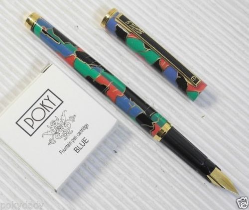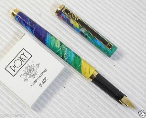 Pirre Paul's F828 Fountain Pen BLUE BLACK + 5 POKY cartridges colour ink BLACK